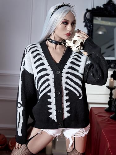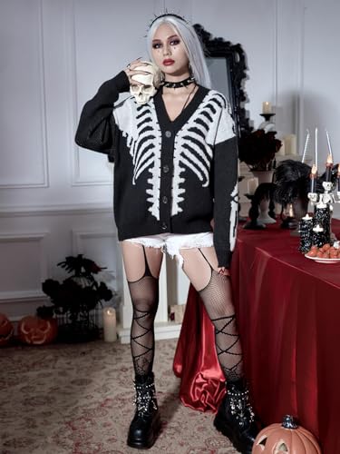 SHENHE Women's Star Print Button Down V Neck Goth Drop Shoulder Cardigan Sweater 6