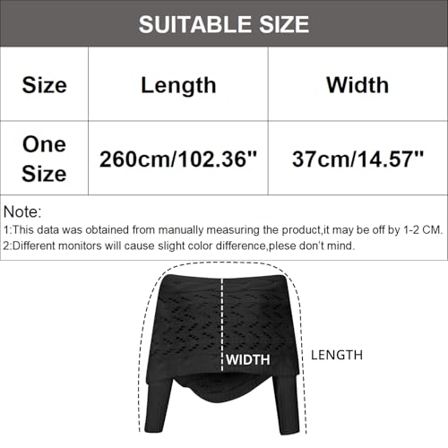 • One Size Fit Most: Shawl wraps for women features a slightly loose wrap style and comes in a one size fits all design,The scarf with sleeves is a slightly loose neck,Length 260cm/102.36in, width 37cm/14.56in