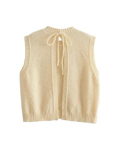 GORGLITTER Women's Y2k Open Back Tie Sweater Vest Bow Backless Cropped Knit Tank Tops Sleeveless Pullover Top 5