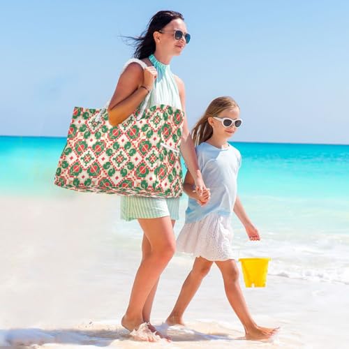 Boho Red Green Pattern Large Capacity Tote Shoulder Bag with side pocketes Duffel Bag Women for beach&school&work 5