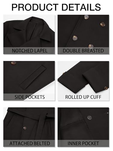 • ►【Feature】: Mens winter casual overcoat features a classic design, including two side pockets and inner pocket, long sleeve, double breasted and classic notch lapel add a sophisticated touch to your outfit, The belt design makes this coat more fashionable, thick quilted lining makes the coat warmer.