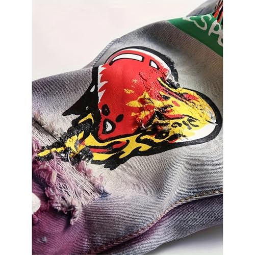 HOT ! Men's Washed Printed Ripped Denim Jeans