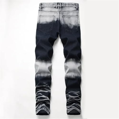 Men's Zippered Ripped Jeans (Without Belt) Motorcycle Straight Slim Fit Casual Denim Trousers 6