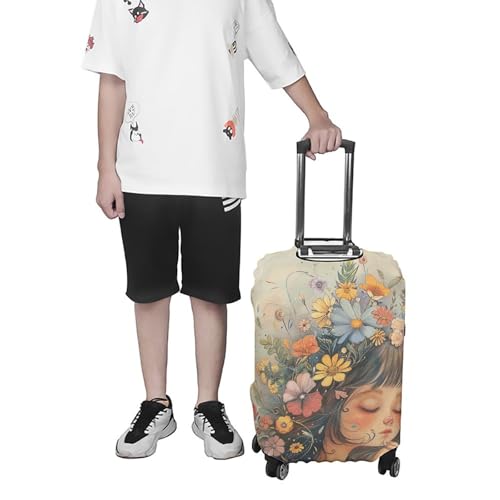 • DOUBLE-SIDED OPENING DESIGN: Floral Woman Drawing luggage cover protector tsa approved includes side slits for easy access to your luggage handles and adult suitcase cover a zipper-bottom to securely fasten the cover to your luggage while ensuring a tight fit.