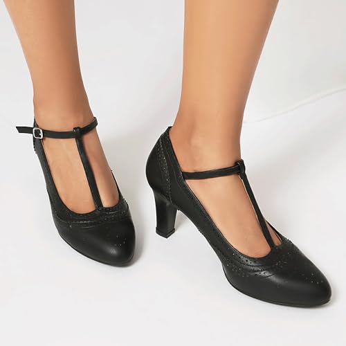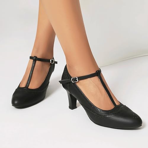 Women's Mary Jane Rockability Oxford Close Round Toe Vintage Wingtip 1950s Heels T-Straps Retro 1920s Victorian Pumps Shoes 6