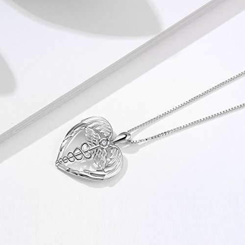 YFN Sterling Silver Caduceus Angel Nursing Themed Pendant Necklace 18" (Nurse Necklace) (Nurse Necklace) 6