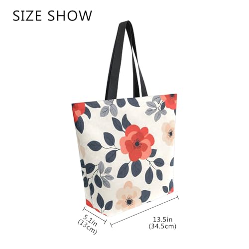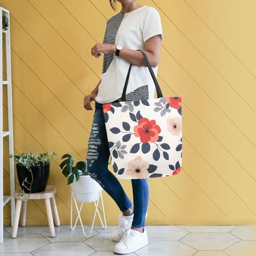 HOT ! Extra Large Shoulder Tote Bag for Beach Travel Weekender Gym Flower Leaves Red Pattern Black Leaves Reusable Grocery Canvas Shopping Bag