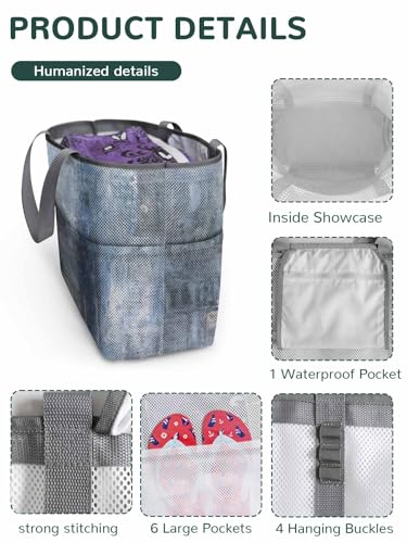 Mesh Beach Bag Oversized Tote Bags for Women Blue Gradient Oil Painting Art Large Travel Pool Bags with 8 Pockets 7