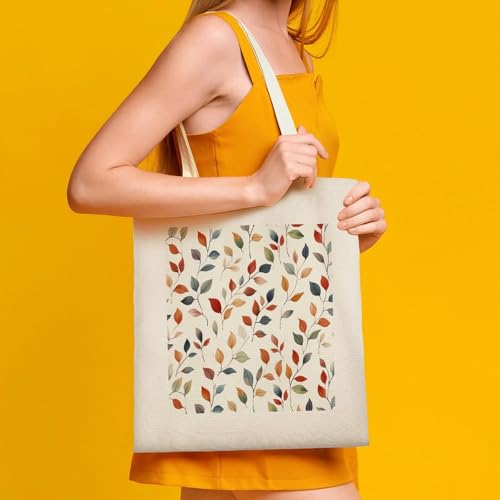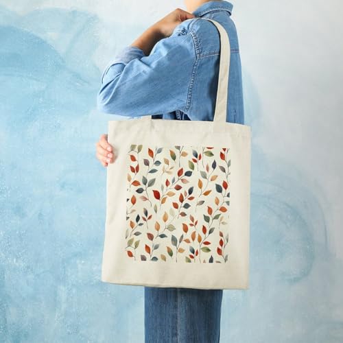 Orange Blue Watercolor Leaves Canvas Tote Bag Fall Leaves Reusable Shoulder Tote Bag for Shopping, Gym 6