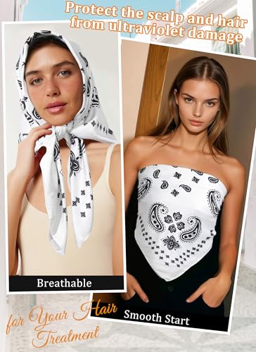 • SILK HAIR BANDANAS FOR VARIOUS OCCASIONS:This silk bandana can be used as a head scarf, hair wraps, or beach accessory to protect your scalp. Perfect for business, office, daily life, home, school, gatherings, or travel, this scarf is suitable for year-round use