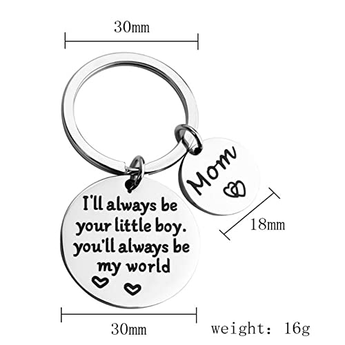 ♥LOVE♥--The material is made of premium stainless steel, wear-resistant, strong, non-allergic, non-rusting, safe and firm, and can be safely worn.♥LOVE♥--The best mom key chain size: the ring diameter is 25mm and 30mm♥LOVE♥--The color comes from the traditional silver, which better expresses the love for the family.♥LOVE♥-- I'll Always Be Your Little Girl, You Will Always Be My World.♥LOVE♥ --The perfect Mom Christmas present; Mother's birthday present; Mother's Day gifts; Thanksgiving and Valentine's Day gifts from sons and daughters to their mothers; The perfect Dad Christmas present; Dad's birthday present; Father's Day gifts; Thanksgiving and Valentine gifts from sons and daughters to their fathers.♥LOVE♥--If you have any questions about this key of love and blessing, please feel free to contact me. Perfect for everyday use. High quality materials and excellent craftsmanship ensure long-lasting durability.