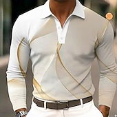 More information about Men's Abstract Geometic Polo Long Sleeve Polo Shirts Lapel Business Casual Outdoor Street Athleisure Daily Wear 3D Print Buttons Spring Fall Winter Blue Gold Green