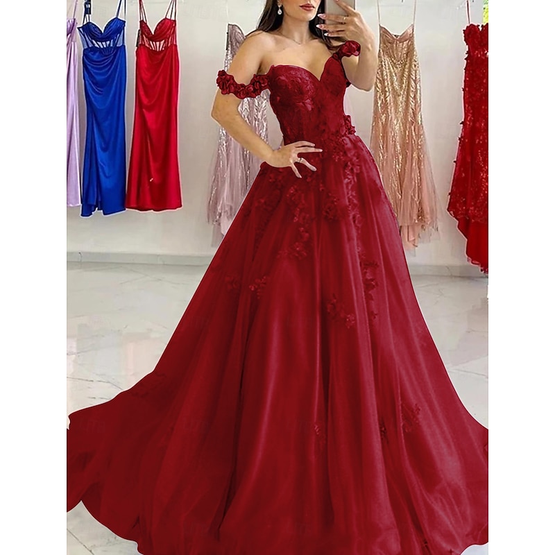 A-Line Prom Dresses Elegant Dress Formal Sweep / Brush Train Sleeveless Sweetheart Tulle with Pleats Sequin Appliques Masquerade Dress 1