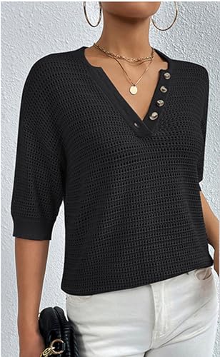 Women's Hollow Out Half Sleeve Shirt Summer V Neck Knit Sweater Casual Loose Fit Pullover Top 5