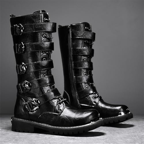 CHUUMEE Men's Wear Resistant Cycling Motorcycle Boots Side Zipper Waterproof Biker Riding Punk Rock Metal Toe Cowboy Western Tactical Army Boot