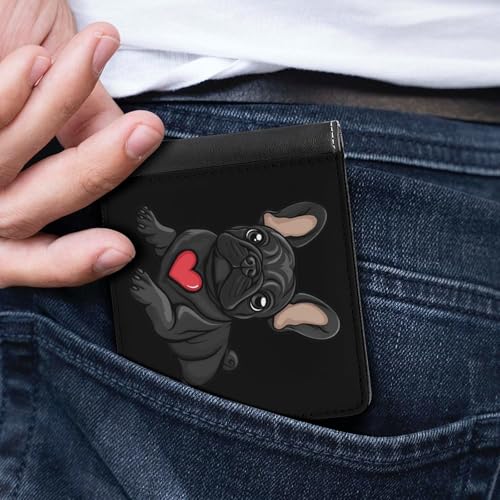 French Bulldog Love Heart Bifold Wallet for Men Women PU Leather Slim Purse Pocket Wallet with Card Holder 3