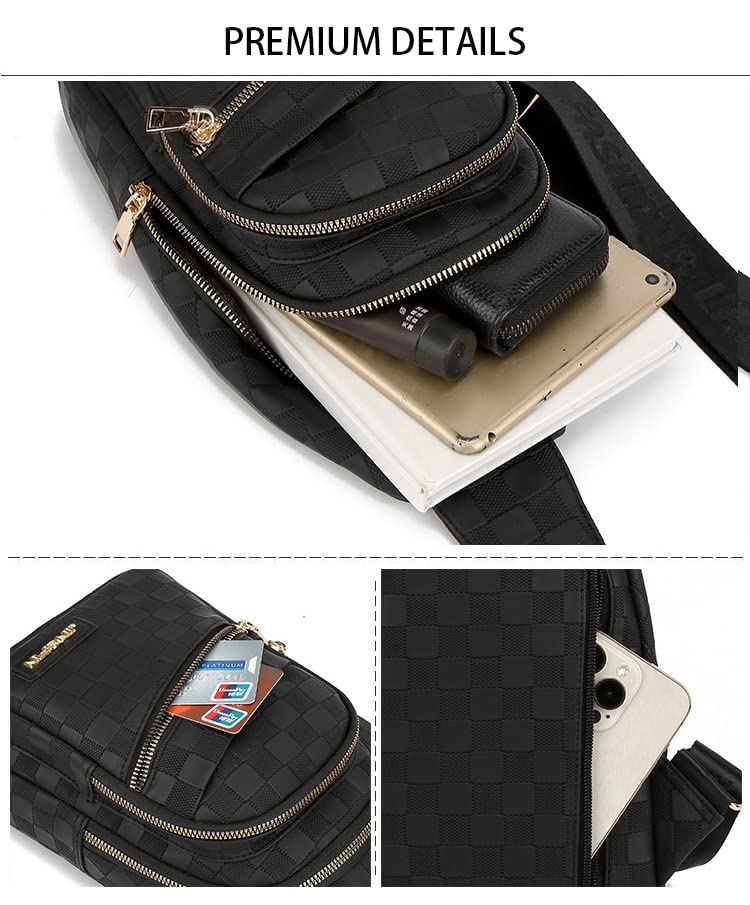 OANEXX Chest Sling Bag Women Crossbody Shoulder Sling Backpack Checkered Chest Fanny Daypack Adjustable 5