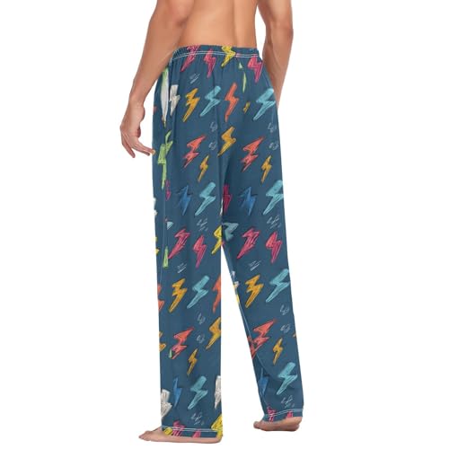 Men's Pajama Pants Cartoon Thunder Hand Drawn Pajama Pants for Men PJs Bottoms Drawstring Pockets Sleep Lounge Pants S 3