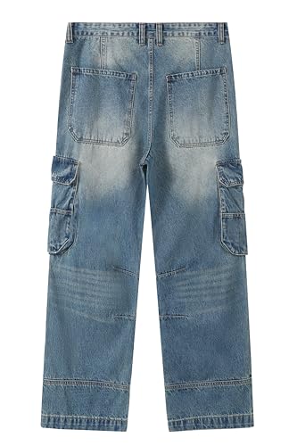 Men's Non-Stretch Loose Fit Wide-Leg Baggy Cargo Jeans Pants 4