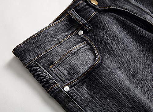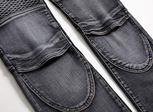 Chowsir Men Vintage Skinny Moto Biker Jeans Stretch Ripped Patch Jeans Straight Denim Pants 7
