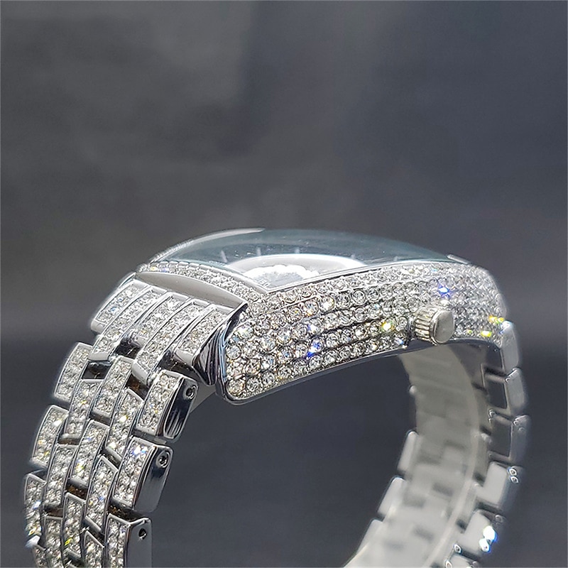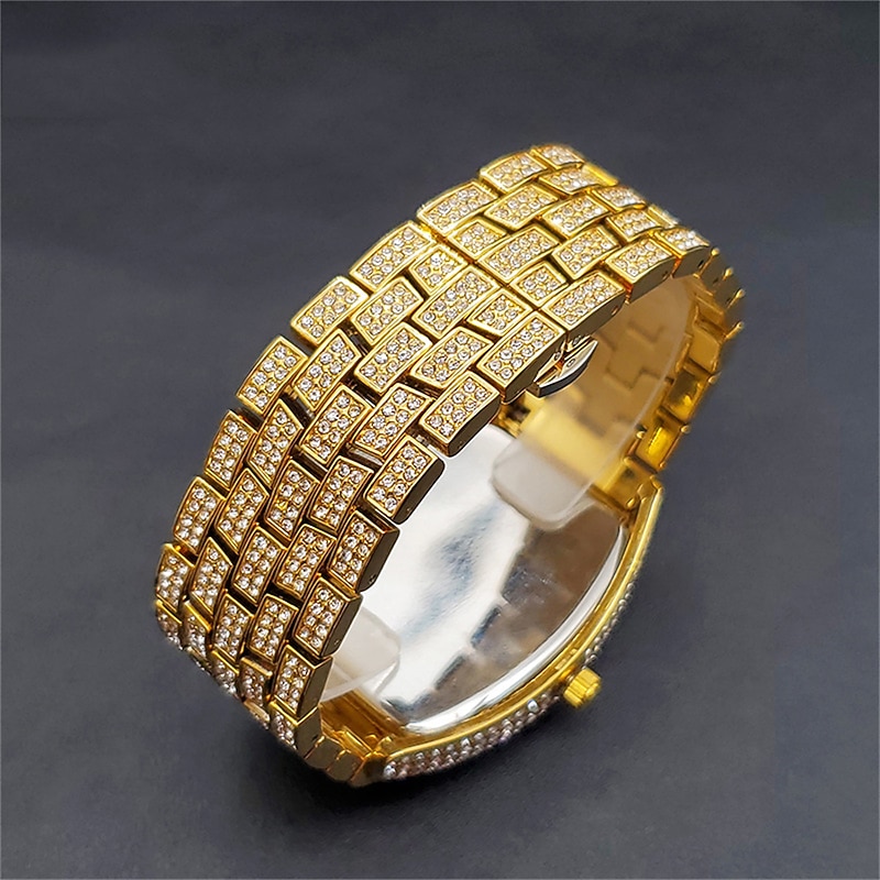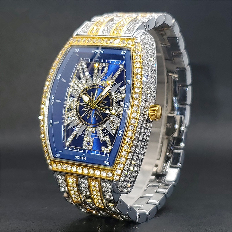 More information about Iced Out Quartz Watch For Men Women Big Wrist Full Diamond Quartz Watches Men's Blue Face Hip Hop Accessories Waterproof Reloj Hombre