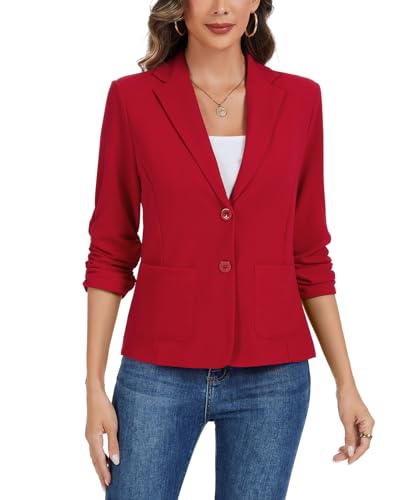 HOT ! MINTLIMIT Womens Casual Blazer Open Front Business Suit Jacket 3/4 Sleeve Button Work Office Blazer Lightweight