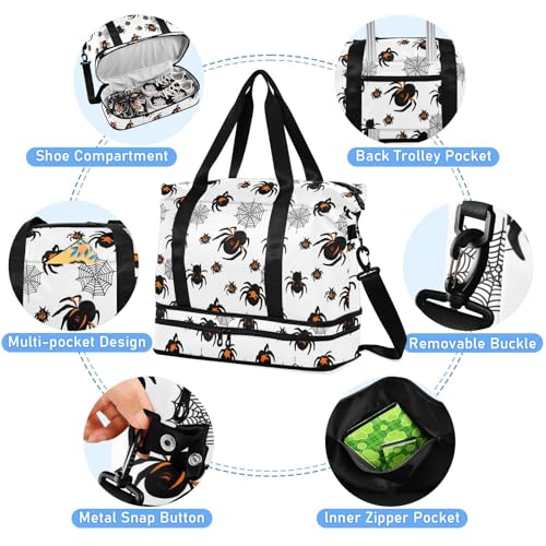 HOT ! Helloween Black Duffel Bag for Women Men Gym Bag with Shoe Compartment Wet Pocket Carry On Weekender Overnight Bags for Hospital Gym Travel