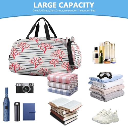 YETTASBIN Sport Travel Duffel Bag for Girls Boys, Coral Large Waterproof Weekender Overnight Bag, Detachable Shoulder Strap Gym Bag with Shoe Compartment & Wet Pocket 1