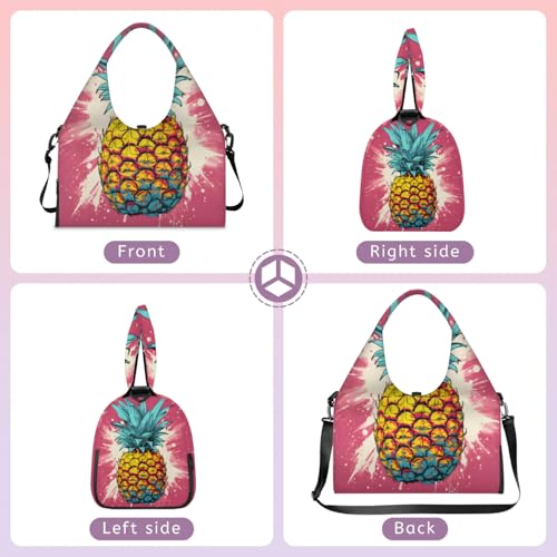 Yoga Tote Bag for Women Pineapple Fruit Beach Bag with Shoe Storage & Yoga Mat Strap Waterproof Weekender Duffle Bag for Travel Fitness Weekend Trips 5