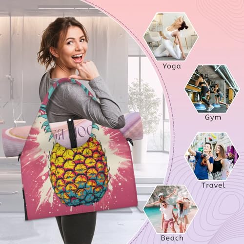 Yoga Tote Bag for Women Pineapple Fruit Beach Bag with Shoe Storage & Yoga Mat Strap Waterproof Weekender Duffle Bag for Travel Fitness Weekend Trips 7
