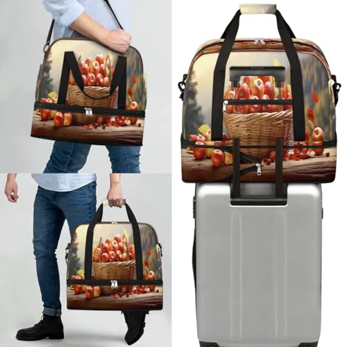 Travel Duffel Bags Apples Pattern Foldable Weekender Bags for Women with Shoes Compartment Waterproof & Tear Resistant Carry on Overnight Luggage Duffel Bag Shoulder Sports Tote Bag,B-748 5