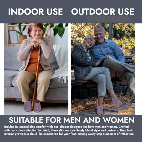 • The rubber sole is designed to withstand various surfaces, making these slippers suitable for outdoor use as well. Whether you're strolling through the garden or stepping outside to fetch the mail, the rubber sole provides excellent grip, preventing slips and ensuring your safety. The sole's thickness and cushioning offer a comfortable walking experience, even on rough terrain.