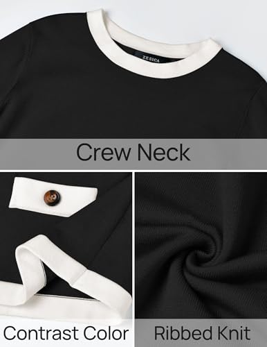 HOT ! ZESICA Women's Fall Sweaters 2025 Long Sleeve Crewneck Knit Color Block Lightweight Pullover Tops Clothes