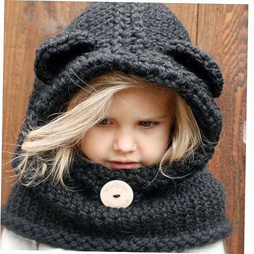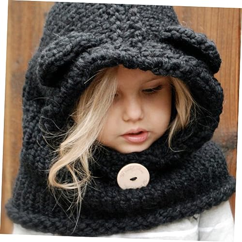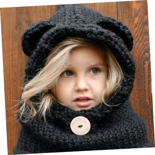 Cute Kids Bear Hat Scarf Winter Knitted Cape Beanies One Size Bear Hat for Warmth Black 5