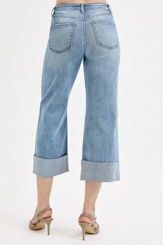 trending ! Risen Tummy Control High Rise Cuffed Jeans- Ivory Gem