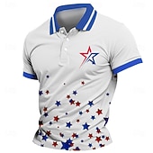 Independence Day Men's Star Polo Short Sleeves Lapel Casual Daily Sports & Outdoor Athleisure Festival Buttons Summer Robin's Egg Blue Red 3