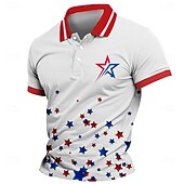 More information about Independence Day Men's Star Polo Short Sleeves Lapel Casual Daily Sports & Outdoor Athleisure Festival Buttons Summer Robin's Egg Blue Red