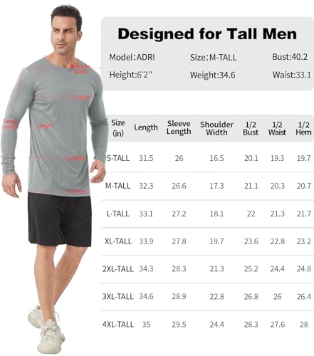 Men's Tall Rash Guard Long Sleeve T Shirts - UPF 50+ Sun Protection Tee Shirt for Fishing, Swim, Hiking 4