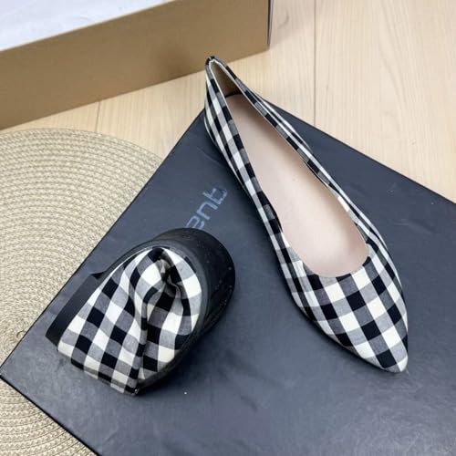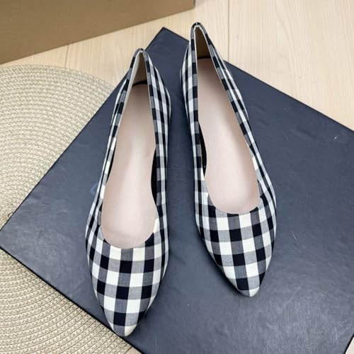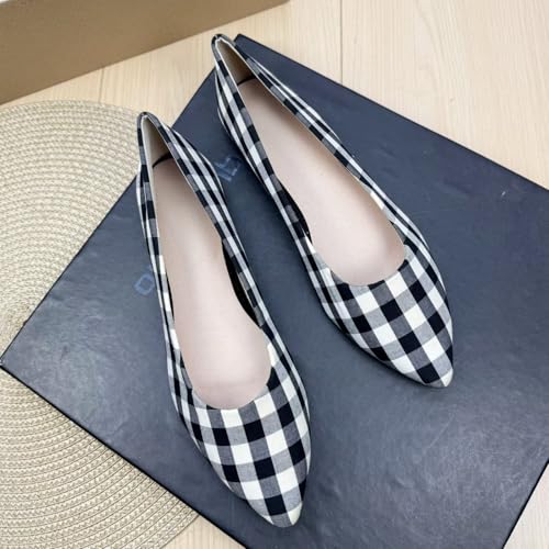 WENJIAZHIZHI Women's Checkered Pointy Toe Ballet Flats snug Flat Shoes Elegant Female Slip-Ons