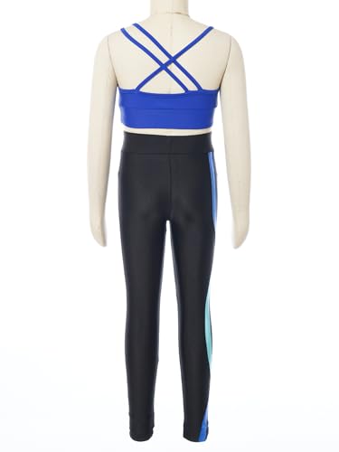easyforever Kids Girls Two Piece Athletic Leggings And Crop Tops Tracksuit Activvewear Set Gymnastics Dance Workout Outfits Royal Blue&Blue 8 Years 6