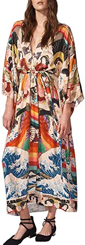 Fabric type: 100% RayonCare instructions: Hand Wash OnlyOrigin: ImportedUS Size From S-XL Shoulder:30.3(77cm)Length: 55.5(141cm) Sleeve:10.2(26cm) for US size S-XL Distinct ethinic beach kimono coverups for women; Maxi length kimono robes for women plus size and overall design--makes you look tall and slimThis kimono dress is very lightweight, and elegant that it can be worn a multiple of different ways. The color of beach kimono combinations are distinctive. Can be worn as a dress, kimono for women plus size kimono robe coverup at the beach, or for parties and nights out during the summertime!This kimono dress is very lightweight, and elegant that it can be worn a multiple of different ways. The color of beach kimono combinations are unique. Can be worn as a dress, kimono for women plus size kimono robe coverup at the beach, or for parties and nights out during the summertime!Can be dress as casual summer maxi dress kimono cover up beach coverups lounge evening or party dressDesigned to be worn for Day or Night Wear for Party Hard Mode | Pool Cocktails | Evening Loungewear | Ravishing Dress kimono robe Beach Cover up | Holidays n Eve Events Occasion: Loungewear | Resort Pool Dress | Casual Evening Wear womens kimono cardiga Vintage Dress Perfect for everyday use. first-class materials and excellent craftsmanship ensure long-lasting durability.