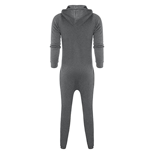 HOT ! Men's Hooded Jumpsuit Zip Up One Piece Pajamas Playsuit Jogger Sweatsuit Overall Romper (Grey,XX-Large)