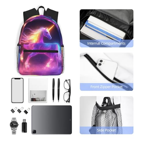 Lightweight Polyester Travel Hiking Backpack for Men Women, Rainbow Stars Nebula Galaxy Unicorn Bags, Large Capacity Anti-Theft Multipurpose Bookbag with USB Charging Port 7