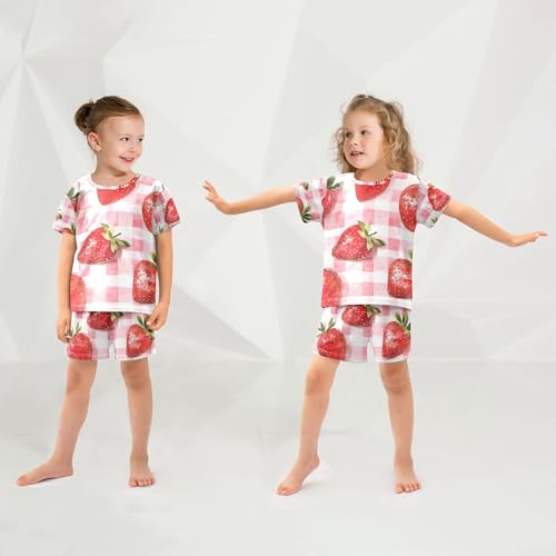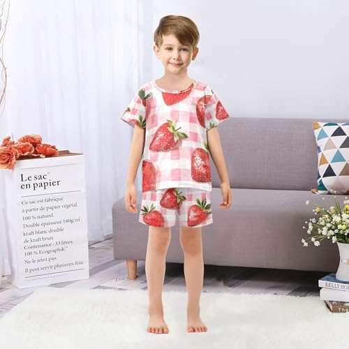 Strawberry Plaid Summer Pajamas Set 2 Piece Short Cotton Sleepwear, 5-14 Years 1