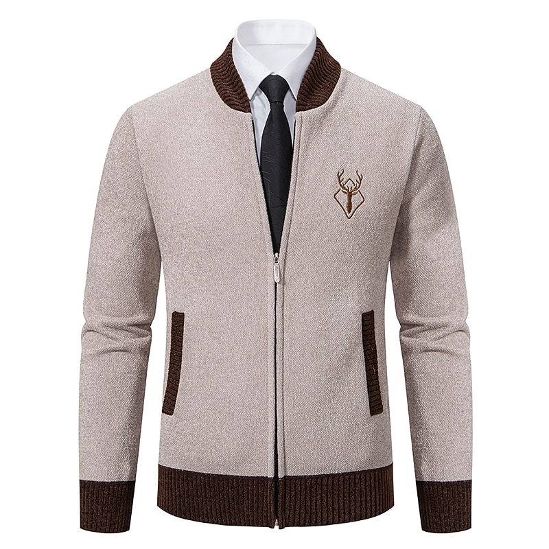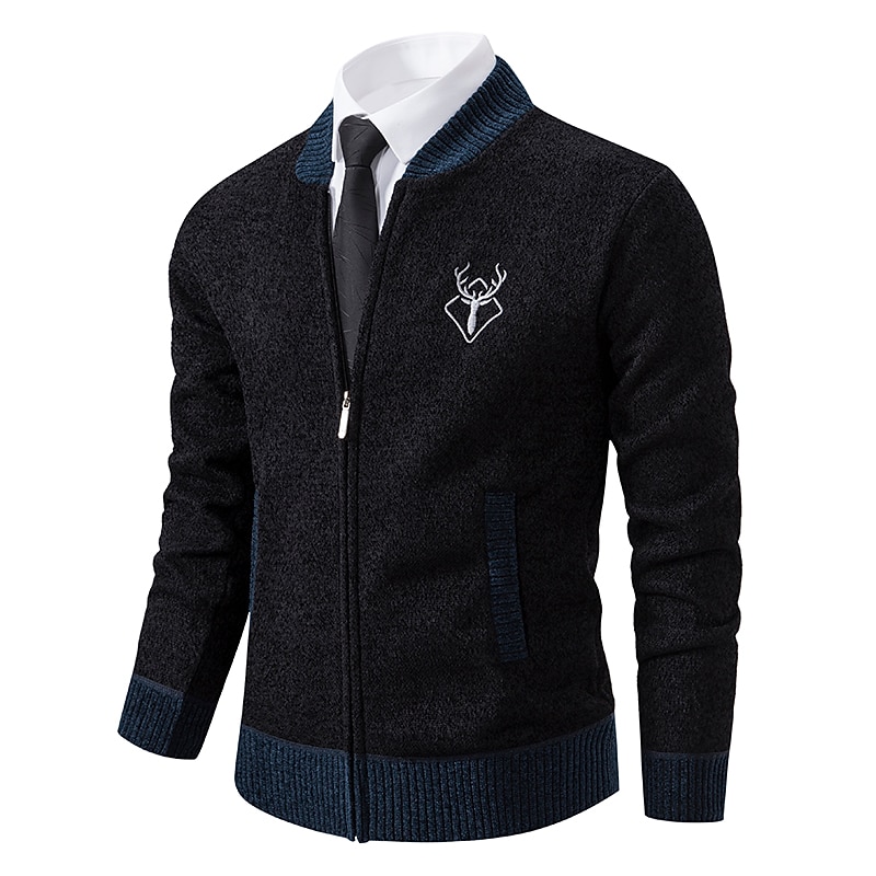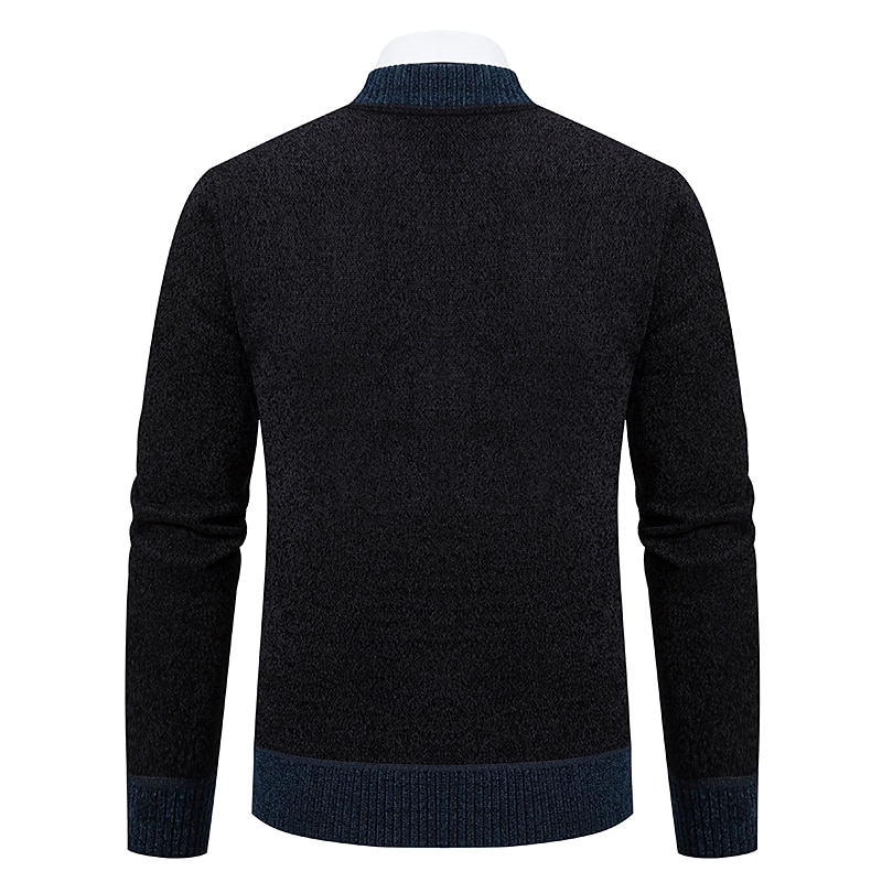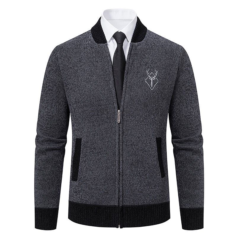 More information about Men's Sweater Cardigan Sweater Mens Dress Sweaters Ribbed Knit Regular Knitted Stand Collar Warm Ups Modern Contemporary Back to School Daily Wear Clothing Apparel Fall & Winter Black Dark Grey S M L