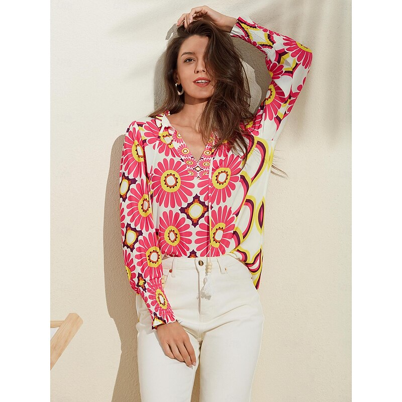 Highlights - Stay cozy and stylish with this women's long sleeve V neck top - The V neck design adds a touch of femininity to your outfit - Perfect for pairing with your favorite jeans or leggings - Versatile and comfortable for all day wear