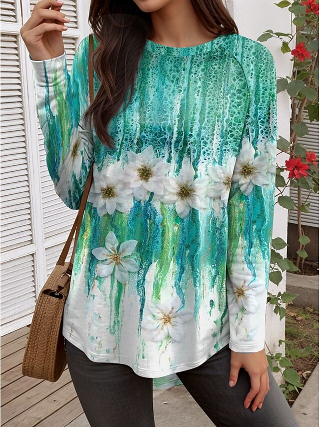 Women's T Shirt Floral Graphic Plants Vintage Fashion Stylish Long Sleeve Crew Neck Regular Tops Daily Weekend Print Purple Orange Green Spring Fall 2