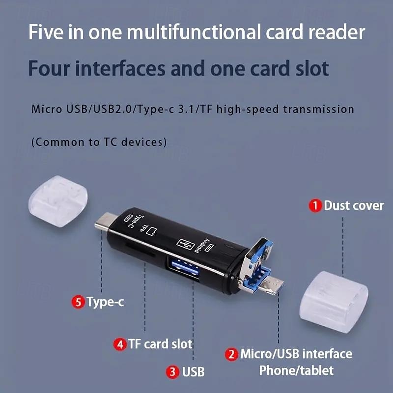 This 5-in-1 Card Reader OTG Android Multi-function TF Card Reader USB Multi-in-one combines elegant design with practical functionality. Every detail has been carefully considered to ensure you get the best possible experience. The superb construction means this product will serve you well for years to come.