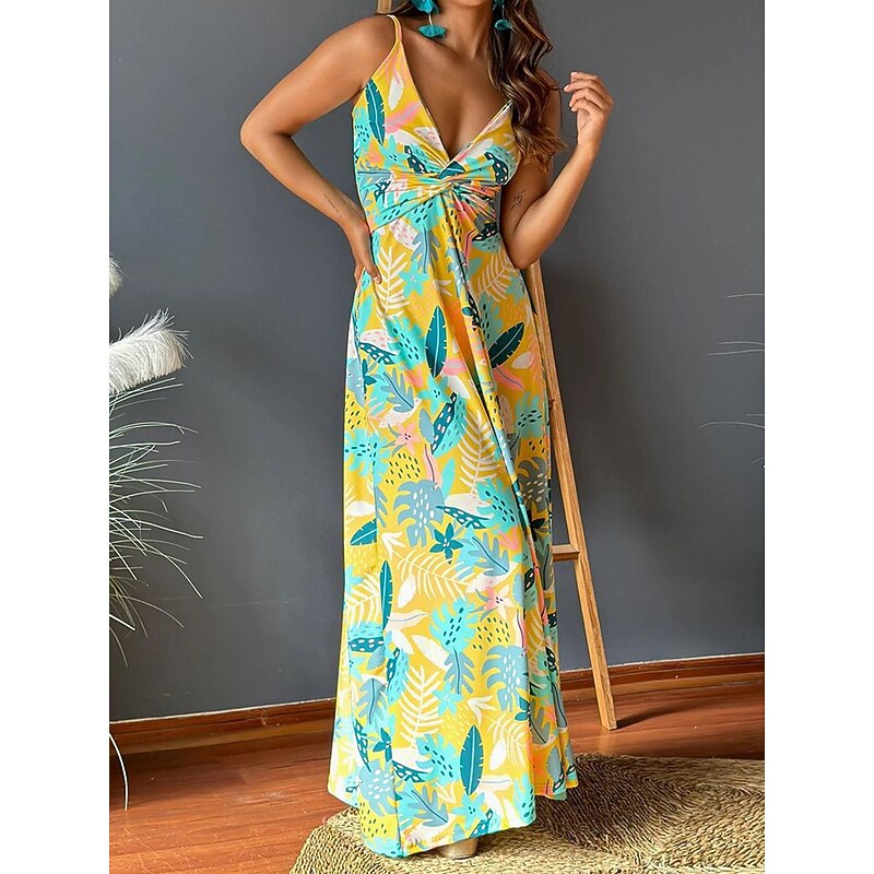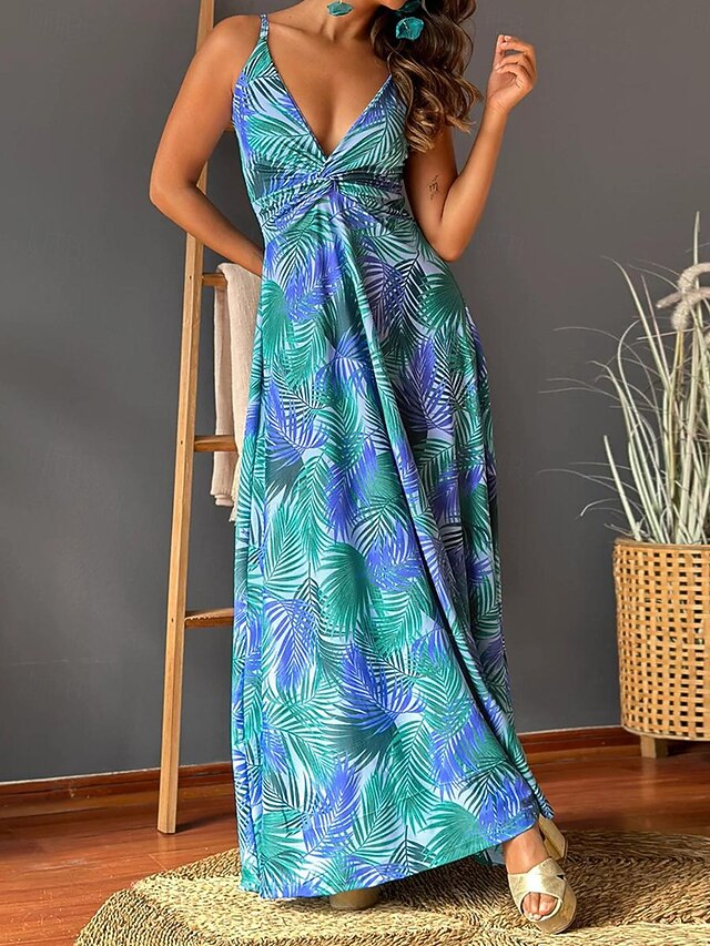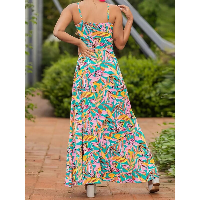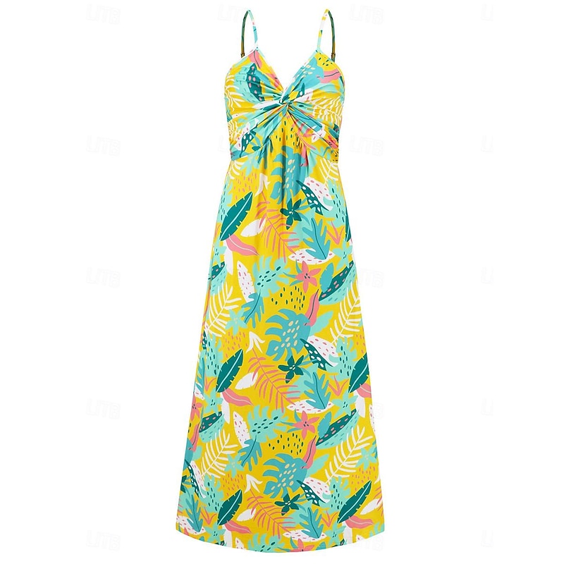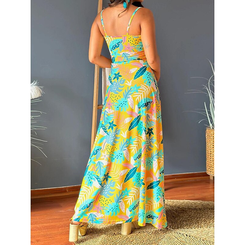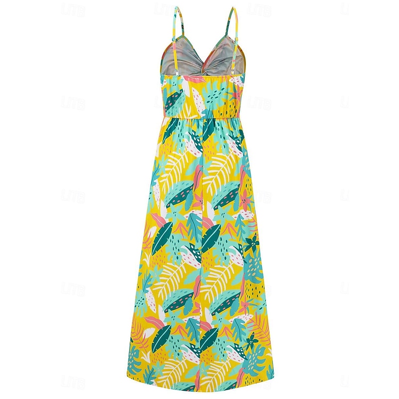 More information about Women's Casual Dress Swing Dress Slip Dress Floral Leaf Backless Print Strap Long Dress Maxi Dress Hawaiian Casual Daily Vacation Sleeveless Summer