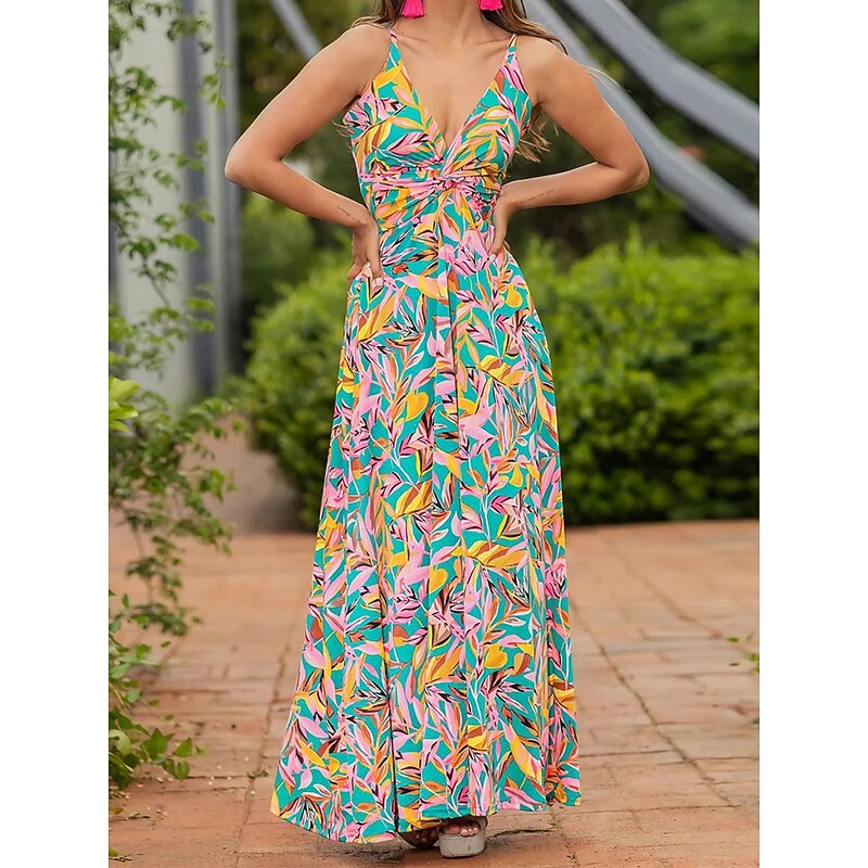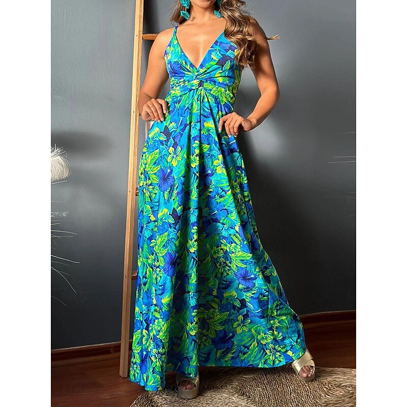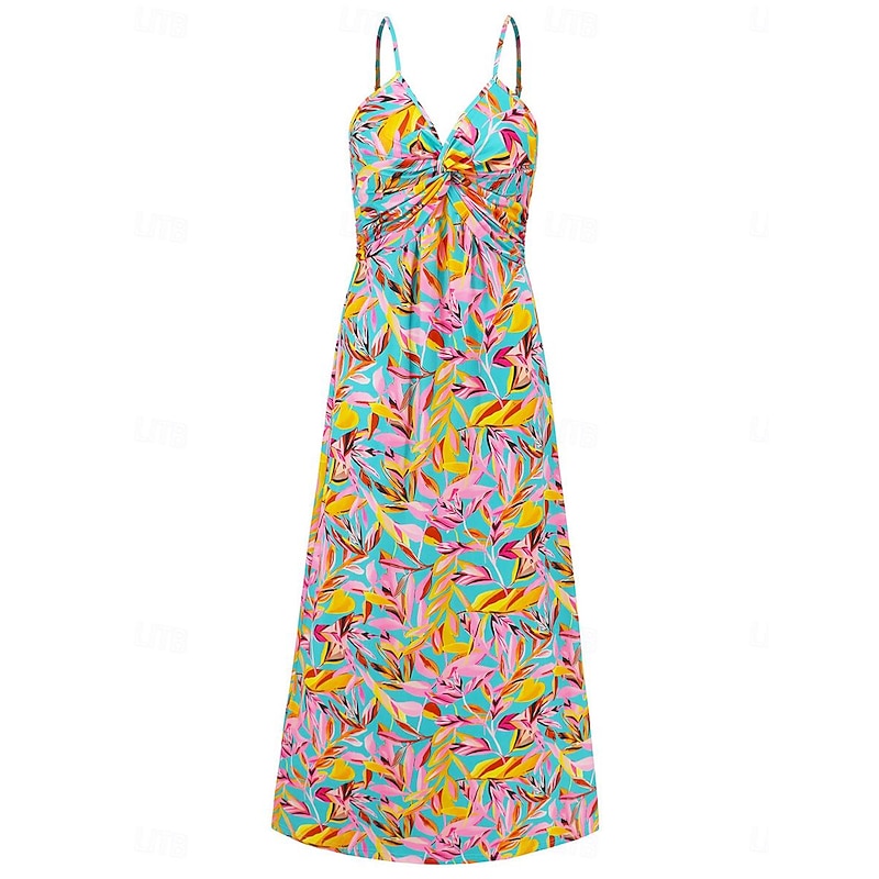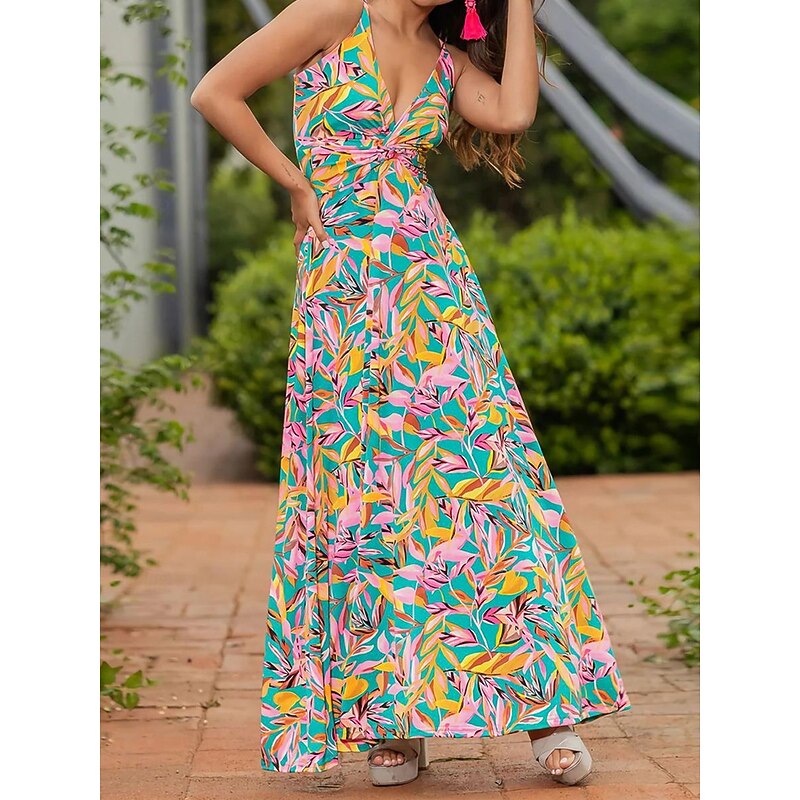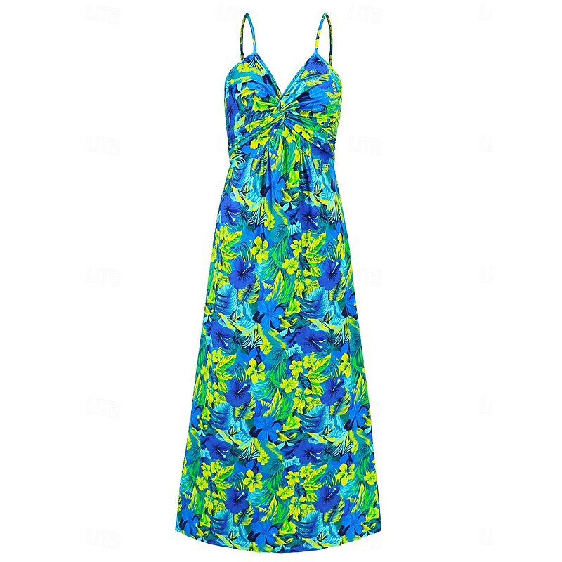 More information about Women's Casual Dress Swing Dress Slip Dress Floral Leaf Backless Print Strap Long Dress Maxi Dress Hawaiian Casual Daily Vacation Sleeveless Summer